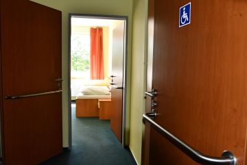 Pro osoby se zdravotním postižením jsou k dispozici dva speciálně vybavené dvoulůžkové pokoje. Samozřejmostí je bezbariérový přístup včetně výtahu. Výhled ze všech pokojů je do areálu aquaparku. V těsné blízkosti ubytovny je bezplatné parkování.